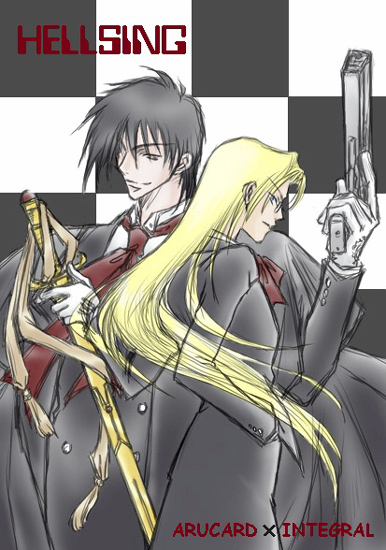 「HELLSING」より従僕吸血鬼アーカードと英国王立国教騎士団局長インテグラル・ヘルシング卿。信じられるか…これでもノーマルなんだぜ!お嬢さんなんだぜ局長!!(笑) 銃だったり吸血鬼だったり英国貴族だったり執事だったり 黒スーツ紅タイ白手袋だったり葉巻だったり眼鏡だったりナチだったり本当に色々と楽しませて貰いました…連載終了おめでとうございます! 若ウォルター話のコミックスはいつ出ますかヒラコー先生!?←