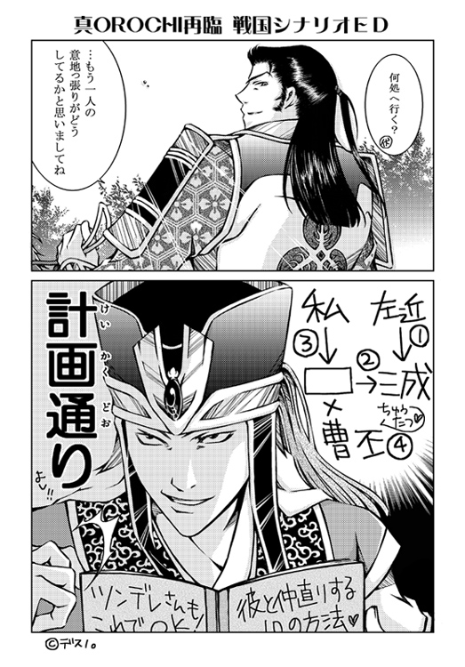 て云うかただの他力本願だろうこれ。そんな訳で主の隣に三成が居る限り魏へと帰れる筈もない司馬懿は、恋敵の本命(?)を頼って利用し外部強制的排除を目論むのでした。コレで再臨戦国シナリオにおける左近に対する司馬懿の有得ない程の友好的協力姿勢も納得出来るというもの…もうアンタ素直に謝っちゃいなよほんとに(笑)