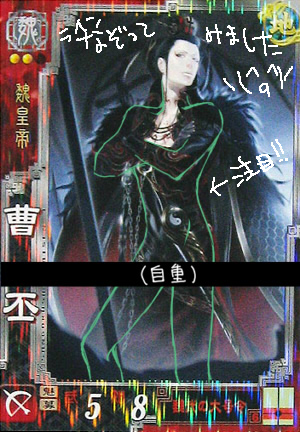 08御年賀。三国志大戦3R文帝陛下初描き。あの女王様目線と細腰(※証拠画像)はマジ確信犯で魅了(チャーム)使ってきてるとしか思えな いストイック大戦司馬懿(老)との年の差ラブに脳内が大変なことになってるよ!←